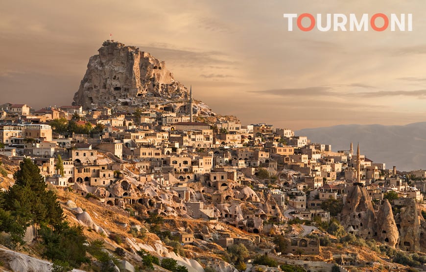 Die Tour durch Kappadokien geht mit einem Stopp an der Burg von Uchisar und einer Mittagspause weiter. Die Burg ist in einen Hügel gebaut und hat Tunnel, die ihre Apartments miteinander verbinden und aus den Felsen herausgeschnitten sind. Nach der Tour gibt es eine Mittagspause in einem benachbarten Restaurant.
