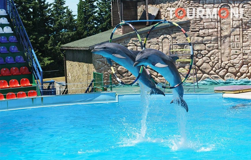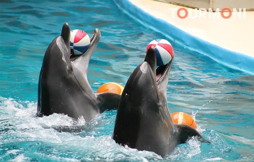 Die Show findet in einem großen Pool statt, der speziell für die Delfine gemacht wurde. Während der einstündigen Vorstellung können Sie diese wunderschönen und intelligenten Delfine mit Spielzeugen und Bällen spielen sehen, durch Reifen springen und verschiedene Aktivitäten durchführen. Qualifizierte Trainer überwachen die Leistung, und die Zuschauer können ein unvergessliches Erlebnis erwarten.