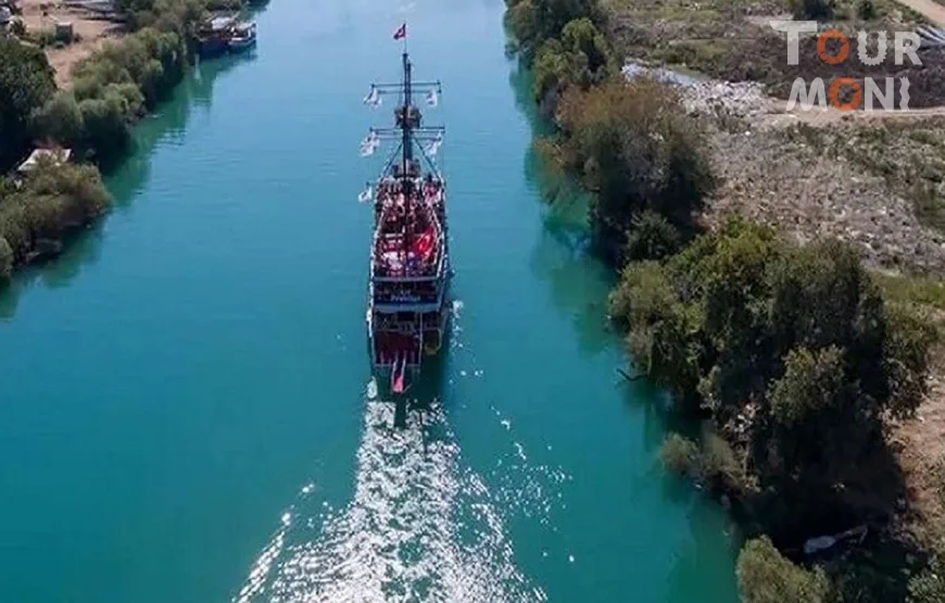 Bei Ihrer Ankunft in Manavgat werden Sie von unserem Doppeldeckerboot begrüßt, das bereit ist, in See zu stechen. Das Abenteuer beginnt mit einem Besuch der herrlichen Manavgat-Wasserfälle, wo Sie die atemberaubende Schönheit des fallenden Wassers bestaunen können. Während wir unsere gemütliche Fahrt fortsetzen, verwandeln sich die Umgebung in friedliche, mit Pinien bewachsene Ufer und schaffen eine ruhige Atmosphäre. Nehmen Sie sich die Zeit, um die Sonne zu genießen, einen gemütlichen Platz auf dem Bootsdeck zu finden und sich in die natürlichen Wunder entlang des Flusses zu vertiefen.