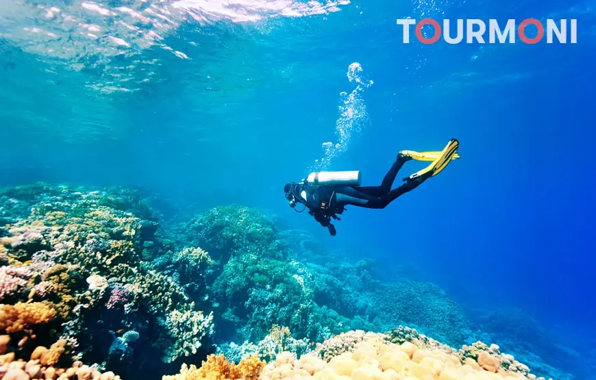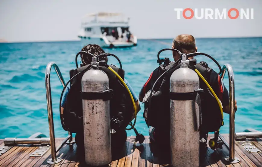 Sobald Sie an Bord sind, werden sich all Ihre Bedürfnisse umsorgt sein. Da wir nur die beste Ausrüstung verwenden, müssen Sie sich keine Sorgen um die Qualität Ihres Tauchgangs machen. Der erste Tauchgang, den wir gemeinsam machen, ist mehr eine Übungssitzung, bei der Sie sich mit der Ausrüstung vertraut machen und das Gefühl beim Tauchen zum ersten Mal erleben können. Bei diesem Tauchgang werden wir auf eine Tiefe von etwa 5 Metern abtauchen. Ihre erfahrenen Tauchexperten werden Sie auf eine kurze Tauchgang-Tour mitnehmen, bei der Sie die Möglichkeit haben, eins mit dem Wasser zu werden. Wenn Sie den bunten Fischen durch die Korallen folgen, werden Sie eine Seite dieses natürlichen Ökosystems sehen, die Sie noch nie zuvor gesehen haben.