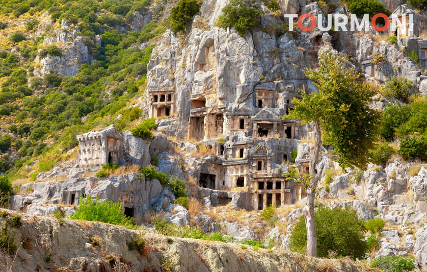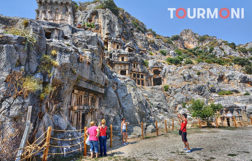 Das Boot kehrt zum Anlegeplatz zurück, von wo aus Sie mit einem Bus in die historische Stadt Myra fahren können. Wie Ihr Reiseleiter erklären wird, sind die Felsengräber und das Amphitheater dieser antiken Stadt berühmt. Die Kirche des Heiligen Nikolaus ist der Ort, an dem die Expedition in Richtung Demre weitergeht. Dieser heilige Ort ist beliebt, weil er einen Marmorsarkophag hat, den viele Menschen für das eigentliche Grab des Heiligen Nikolaus halten. Die Kirche ist jetzt ein Museum, das jedes Jahr Tausende von Menschen begrüßt.