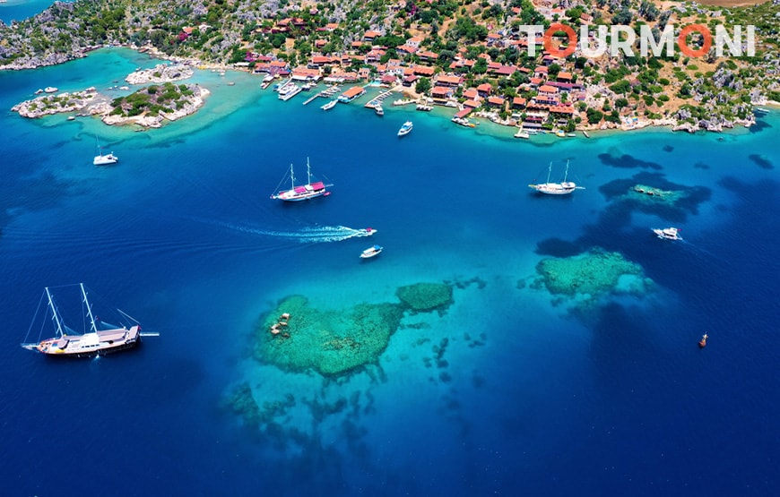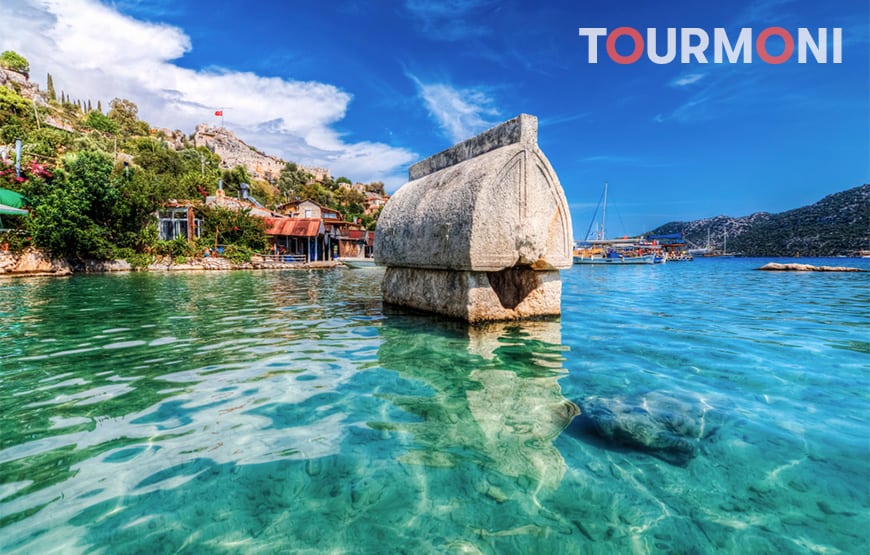 Der Bus wird als nächstes zum kleinen, aber bezaubernden Hafen von Kekova fahren. Sobald Sie am Hafen angekommen sind, werden Sie eine unterhaltsame und lehrreiche Exkursion auf einem Boot unternehmen. Es sollte erwähnt werden, dass das Boot einen Glasboden hat und am besten geeignet ist, um die Überreste der versunkenen alten Stadt zu sehen und zu bewundern. Während der Bootsfahrt werden Sie einen Blick auf die versunkenen Gebäude und die Stufen, die zu dieser begraben Metropole führen, erhaschen können. Der sachkundige Reiseführer wird eine gründliche Darstellung der Geschichte dieser antiken lykischen Stadt geben. Wenn das Boot sich der Insel Kekova nähert, werden Sie die Verteidigungsmauern und Überreste einer byzantinischen Kirche sehen.