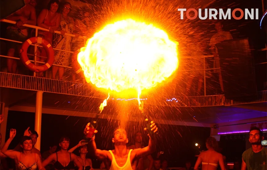 Möchten Sie die beste Party-Umgebung? Schließen Sie sich uns auf einer Starcraft Disco-Boot-Nachttour ab Alanya an und genießen Sie eine aufregende Tour wie keine andere! Es verspricht eine perfekte Party-Atmosphäre, erstaunliche Aussichten und lustige Erinnerungen und ist somit das perfekte Erlebnis für jedermann. Worauf warten Sie dann? Diese einzigartige und unterhaltsame Tour beginnt am späten Nachmittag. Um die Dinge zu vereinfachen, wird ein nagelneues Auto mit Klimaanlage Sie von Ihrem Hotel in Alanya abholen. Seien Sie bereit, von dem riesigen Boot beeindruckt zu sein, wenn Sie im Hafen ankommen. Insbesondere ist Starcraft ein modernes, mehrstöckiges Boot, das komplett eingerichtet ist, um Sie für eine unglaubliche Party auf See zu unterhalten. Wenn Sie eintreten, wählen Sie eine Position, setzen Sie sich und bereiten Sie sich auf eine fantastische Disco-Nachttour vor! Greifen Sie nach Ihren Kameras für einige erstaunliche Küstenfotografien, während das Boot ablegt. Die Stadtlichter von Alanya schaffen bei Nacht eine schöne und angenehme Stimmung und bieten die ideale Kulisse. Sie können Ihre Mahlzeit an Bord des Schiffes aus einem offenen Buffet auswählen, einschließlich einiger beliebter Gerichte aus der türkischen Küche. Die an Bord stattfindende Party ist jedoch der Hauptanziehungspunkt der Nacht-Kreuzfahrt. Ihr Vergnügen steht bei uns an erster Stelle. Daher wird ein DJ fröhliche Songs aus der ganzen Welt spielen. Während Ihr Körper mit großen Schaumstücken bedeckt ist, betreten Sie die Tanzfläche und halten Sie dem Beat stand. Dank der Schaumparty auf dem Boot wird Ihr Abend unvergesslich, angenehm und außergewöhnlich sein. Es gibt Bars an Bord des Bootes, an denen Sie unbegrenzt Bier, Wein und Softdrinks trinken können. Bitte beachten Sie, dass die Bars vollständig mit ausländischem Alkohol ausgestattet sind und das Personal köstliche und erfrischende Getränke gegen eine zusätzliche Gebühr anbieten kann. Unsere Starcraft Disco-Boot-Nachttour bietet eine einzigartige nächtliche Ausflugsmöglichkeit entlang der schönen Küste von Alanya. Schließen Sie sich dieser Nacht-Kreuzfahrt an, und Sie können sicher sein, dass es der ultimative Spaß und die ultimative Feier sein wird. Haben Sie Spaß, genießen Sie tolle Erfahrungen mit Ihren Freunden und schaffen Sie bleibende Erinnerungen. Die Tour endet, wenn das Schiff nachts zum Hafen von Alanya zurückkehrt. Dort werden Sie von einem gemütlichen, modernen Auto empfangen, das Sie sicher zurück zu Ihrem Hotel bringt. Wenn Sie nach Hause gehen, können Sie darauf zählen, viele wunderbare Erinnerungen und glückliche Gefühle von dieser erstaunlichen Disco-Kreuzfahrt zu haben.