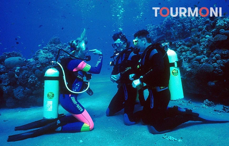 An Bord wird vor Ihrem Tauchgang eine Einweisung stattfinden. Unsere qualifizierten und erfahrenen Tauchlehrer werden Sie über wichtige technische und sicherheitsrelevante Informationen informieren. Die Tauchlehrer werden Ihnen die richtige Verwendung der Ausrüstung zeigen, und Sie werden Ihre Atmung mit speziellen Sauerstoffschläuchen testen. Darüber hinaus werden die Lehrer mittels Gebärdensprache zeigen, wie die Kommunikation unter Wasser funktioniert. Wenn dies Ihr erster Tauchgang ist, brauchen Sie sich keine Sorgen zu machen, da alles ausführlich erklärt wird und Sie die Möglichkeit haben, Fragen zu stellen.